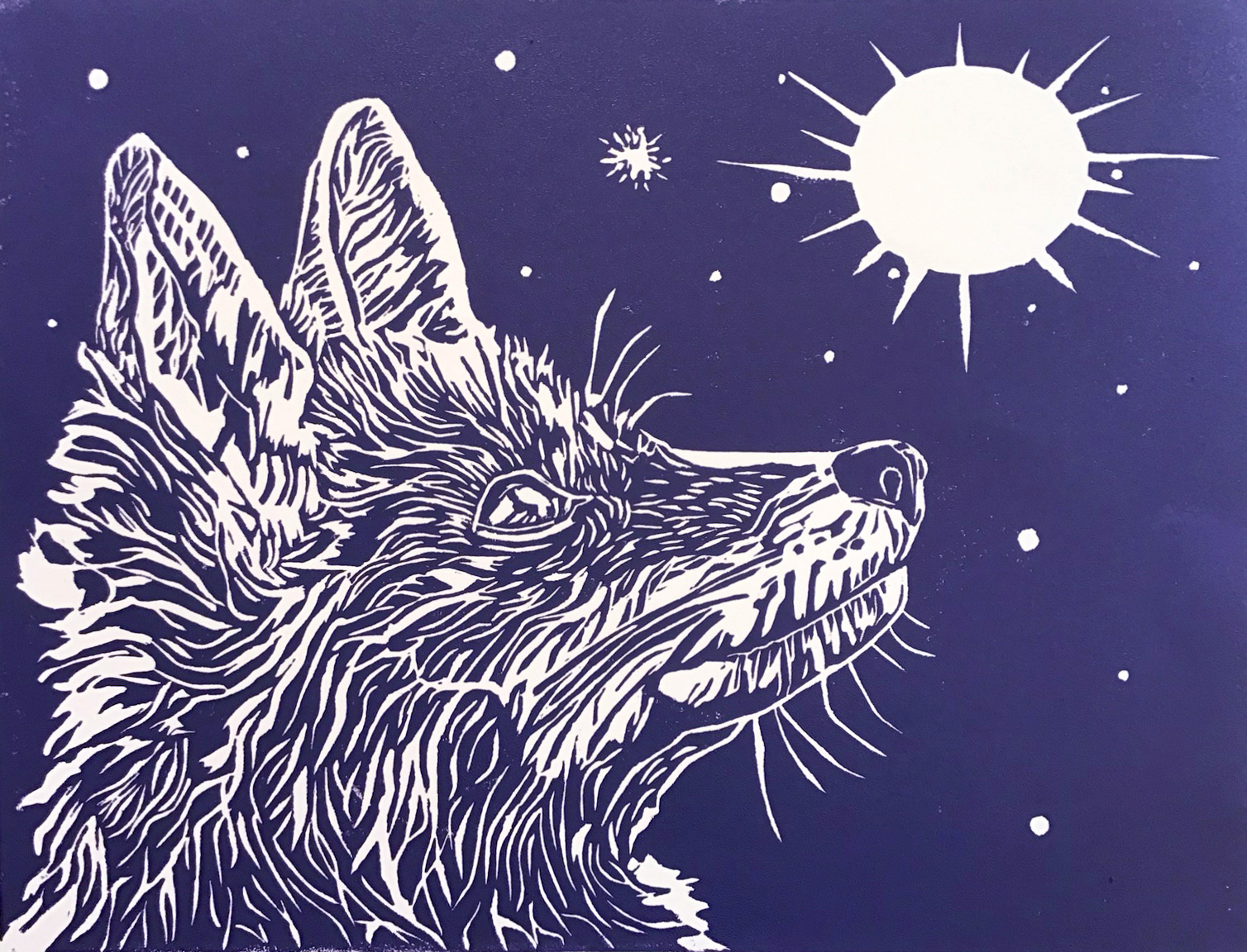 Slip into the purple/bluish moonlit sky with this curious fox. Join the creature in appreciating the awesome!