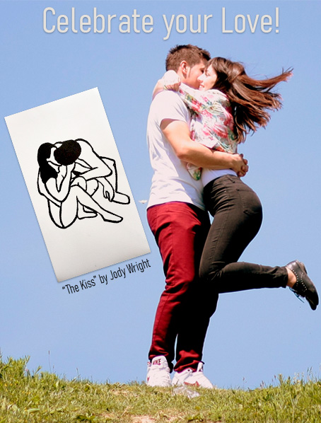 "The Kiss* print, where passion meets the purity of line art! Ever pondered why you remember a special kiss, even years after it happened? This striking linocut captures the sizzling affection of that totally in-the-moment thrill.